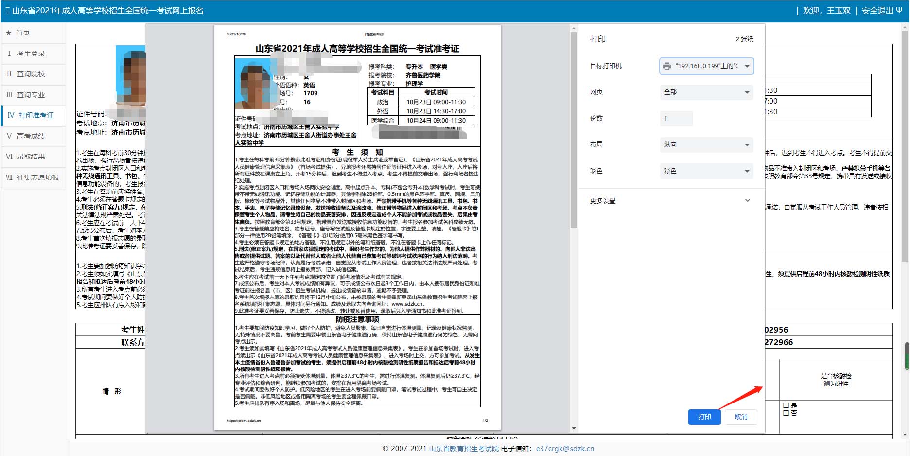 第二步:点击左侧【打印准考证】