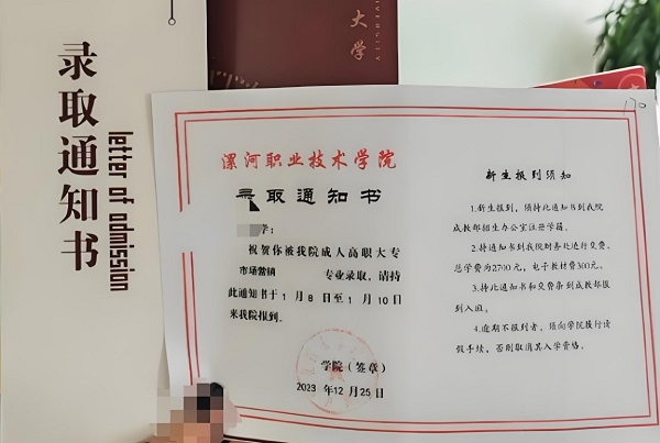 七、2025漯河职业技术学院成人高考录取通知书(参考)