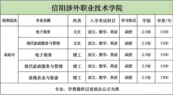 2025信阳涉外职业技术学院成人高考招生专业(二零二五新)